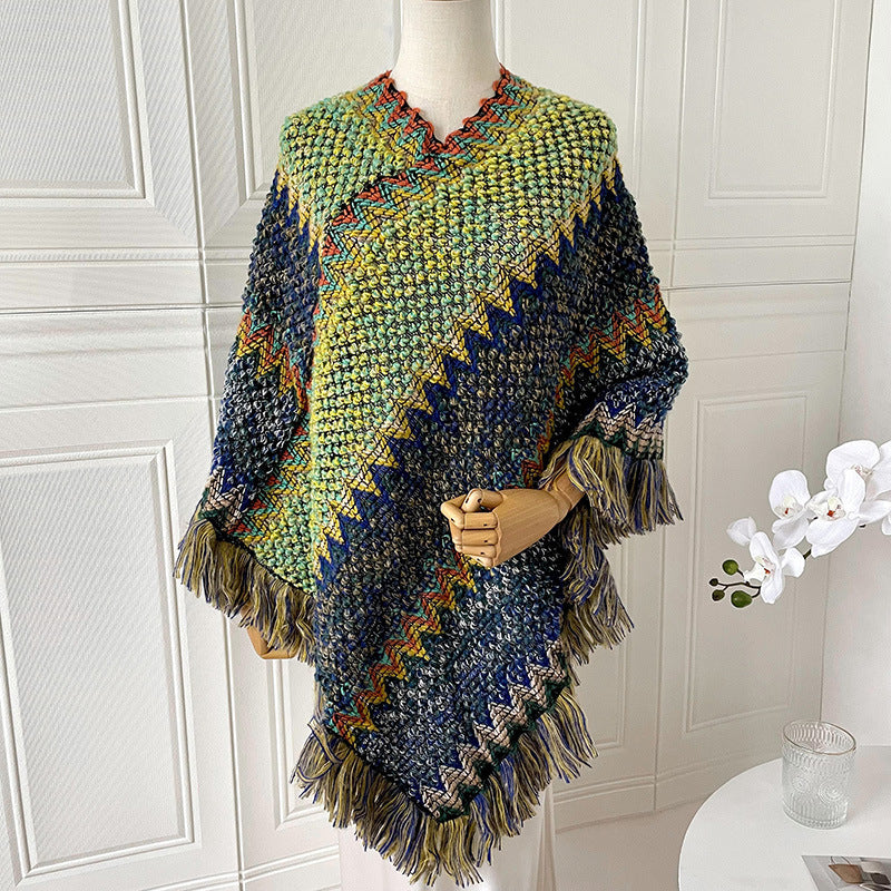 The Zafira poncho is the perfect piece for a chic and relaxed style. With its vibrant ethnic patterns and loose, flowing cut, it adds a touch of character to any outfit while remaining elegant and timeless.